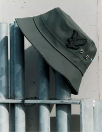 The core of the capsule is a reimagined raincoat. Cut from rubberised cotton, it’s waterproof and breathable. It comes finished with clean lines, snap fastenings, and functional drawstrings. It’s not chasing trends. It’s setting the tone. It works just as well at the bus stop as it does on set.