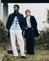 Born on the frontlines of London’s street culture and founded by Andrès Branco in 2012, the community turned cult brand has long championed individuality, nostalgia, and subcultural energy. The marriage of these two brands comes with a shared core value of looking to Britain’s cultural past to dress a modern menswear audience.