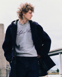 The pale crew neck knit is adorned with cobranded patches, a playful nod to Lyle & Scott’s longstanding presence in sportwear. Vintage script typefaces from the 1940’s are woven throughout, whilst accessories are modernised as demonstrated by the 5-panel cap with rope detailing. Knitwear is emboldened with micro triangle prints in muted colourways which harks back to the brands stronghold during the mod era.