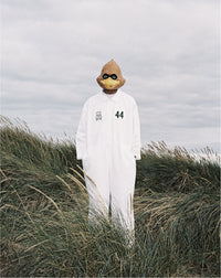 The result is something playful, sharp, and unmistakably new. Shot on windswept UK sand dunes, the campaign feels both surreal and grounded. Think checkerboard shorts and retro sneakers, zip-throughs worn loose, and a guy in a duck mask teeing off into the horizon. It shouldn’t work. And yet, it does.
