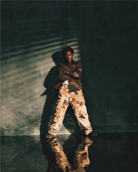On set, DC3 moves with an ease that comes from being comfortable in his lane. The styling blends utility with attitude, camo and tailoring, heritage and edge. It is not about chasing trends but about wearing clothes in a way that feels natural to him. Just like his music, it is a combination of past and present, grit and style, never too perfect but always perfectly him.